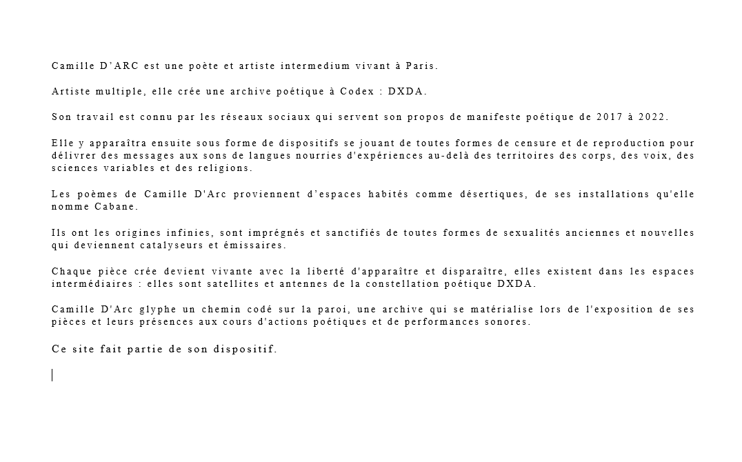 Camille D’Arc / D X D A : Dispositif poétique continu